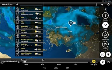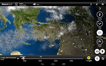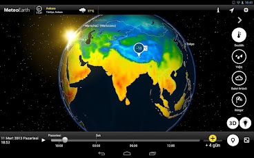 MeteoEarth Gelişmiş bir meteoroloji uygulamasıdır. Android meteoroloji uygulaması arayan arkadaşlar işine yarayacak. Özellik bakımından ileri düzey kullanıcılara hitap eden uygulama anlık olarak hava durumu bilgisi vermektedir. Dünyanın uydu görünümüne ve bulut hareketlerine de uygulama üzerinden bakabilirsiniz.